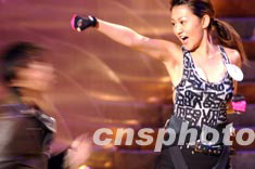 日前,在香港舉行的2003年度香港小姐競(jìng)選準(zhǔn)決賽上,進(jìn)入十二名佳麗行列的王從希,在準(zhǔn)決賽現(xiàn)場(chǎng)表演精彩的“少女武功”。中新社記者:錢興強(qiáng)