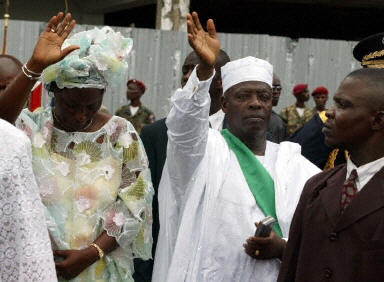 圖為在阿布賈國際機場,新總統(tǒng)布拉揮手送別前總統(tǒng)泰勒。