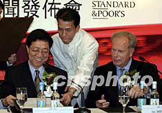 標準普爾投資服務和世華國際金融信息有限公司十二日宣布建立策略聯盟,為中國內地投資與商界提供國際化信息服務。圖為“世華”董事長趙良(左)和標準普爾亞太區董事總經理利迪在新聞發布會上。作者:蕭紓昊