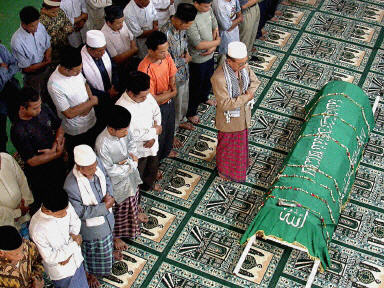 圖:雅加達(dá)萬(wàn)豪酒店爆炸案遇難者舉行葬禮