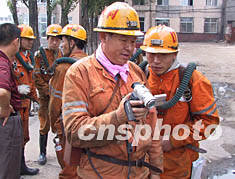 中新社大同八月十四日電(記者張恩)今天下午兩點三十分,大同市礦山救護大隊副隊長范生元帶領六名礦山救護隊員,攜帶有關拍錄設備深入“八·一一”礦難事故發生現場井下,為國務院事故調查組實地取證。
