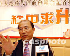 八月十四日,香港五大地產(chǎn)代理商會為救樓市向政府進言,建議務(wù)求樓市“穩(wěn)中求升”。圖為香港地產(chǎn)代理專業(yè)協(xié)會有限公司會長鄧意民在記者會上暢所欲言。作者:潘索菲