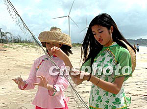 八月十四日,第二屆維可倚南方新絲路模特大賽入圍的三十名選手在汕尾紅海灣進行外景拍攝,靚扮南海魚家女。作者:劉衛勇
