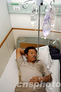 圖為來自吉林榆樹的受傷民工董彥山經過搶救已經完全脫離危險。作者:寧秀英