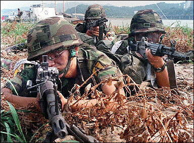 參加演習(xí)的韓國(guó)軍人