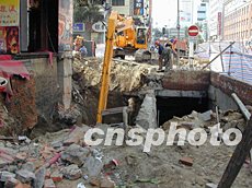 由于地下施工作業面小,地上又有不穩定殘土,隨時有塌方危險,致使整個搶險救援工作非常困難,進展緩慢。據此,哈爾濱市搶險工作采取地上和地下兩個作業面同時進行,地上緊急調來1臺120噸的吊車和一臺長臂挖掘機及多臺作業車,清理事故現場。