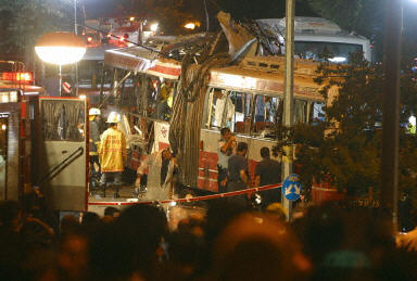 據(jù)當(dāng)?shù)鼐浇榻B,爆炸發(fā)生在當(dāng)?shù)貢r(shí)間晚上9時(shí)左右,爆炸地點(diǎn)在東、西耶路撒冷的分界線附近,遭遇襲擊的是一輛從耶路撒冷老城開往一正統(tǒng)猶太人社區(qū)的19路公共汽車。由于爆炸發(fā)生在滿載乘客的汽車中部,所以傷亡慘重。這是耶路撒冷最近7年來發(fā)生的最為嚴(yán)重的自殺性爆炸事件。