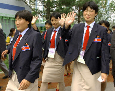 朝鮮體育代表團共有221名成員,包括運動員和記者。他們是乘兩架朝鮮專機抵達釜山機場的。