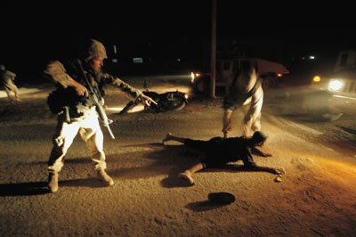 對美軍來說,另外一個重要的源是在巷戰中俘獲的伊拉克游擊分子。美國人會“蓄意”挑起沖突,請君入甕。譬如說,他們會將一輛沒有任何掩護的巡邏坦克開到可疑地區。伊拉克游擊分子見此“良機”,便會貿然出來行動。坦克手鎖定伊拉克發動進攻的方位后,便迅速請求支援。美軍會包圍住整個街區,特種分隊對游擊分子藏身之地發動強攻。當然,所有被俘的伊拉克人都被認為是薩達姆的“同黨”,是薩達姆資助他們進行抵抗行動。所以,這些俘虜均被拷問,讓他們供出從何人手中得到買武器的錢。