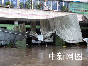 受其影響,海南省會海口市市區出現一年來最大風災,許多建筑遮陽棚被毀。