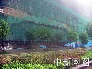 受其影響,海南省會海口市市區出現一年來最大風災,一座在建的商住樓,建筑防護網被刮得七零八落。