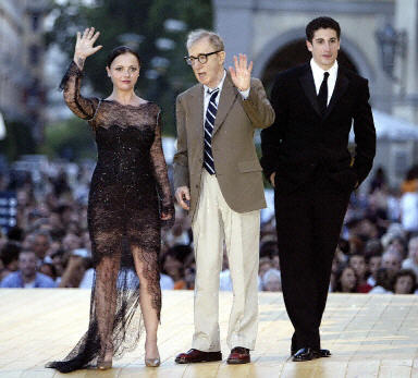 美國著名導演伍迪-艾倫的新作《除此之外》作為開幕片首先在威尼斯電影節(jié)亮相。圖為《除此之外》的導演伍迪-艾倫(中),女主角Christina Ricci(左)以及男主角Jason Biggs(右)亮相開幕式。