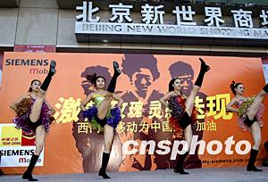 西門子移動電話公司三十日舉行“萬人簽名為中國女足加油”活動,足球寶貝精彩的舞蹈表演將活動推向高潮。中新社記者:趙振清