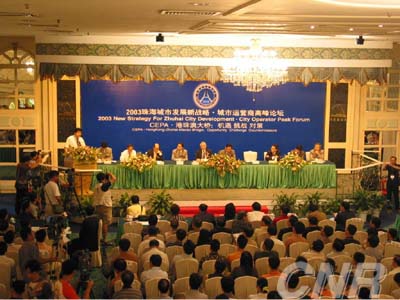 中新網8月31日電 “2003珠海城市發展論壇”8月31日在珠海舉行,來自香港、澳門、珠海以及國內其他地方共400多名專家、學者和社會各界人士就粵港澳三地經濟的融合與發展、港珠澳大橋的興建以及珠海未來發展等問題各抒已見,現場氣氛十分熱烈。