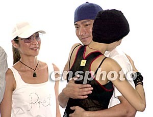 香港藝人梅艷芳9月5日在香港特意舉行記者會,向傳媒坦誠證實(shí)患上子宮頸癌,她表示將積極地接受治療,并得到圈中好友鼓勵(lì)支持。圖為梅艷芳與劉德華擁抱。作者:鄧慶樂