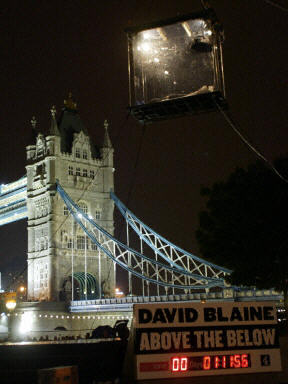 倫敦當(dāng)?shù)貢r間9月5日,美國30歲的魔術(shù)師大衛(wèi)·布萊恩開始了自己將持續(xù)44天的挑戰(zhàn)極限運動。他準備在倫敦泰晤士河上懸掛的一個大玻璃箱子中,獨自度過44天不吃任何食物、只喝水的忍餓日子。