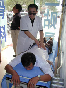 山東省德州市盲人馬利群在給病人治療腰椎間盤突出,老馬的夫人是一個(gè)身體健康的大專生,他倆有一個(gè)活潑可愛(ài)、身體健康的5歲孩子。華夏時(shí)報(bào)圖