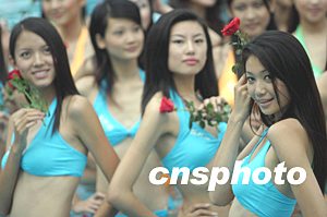 圖:南方新絲路模特汕尾紅海灣顯露泳裝身姿 (2003-08-15 19:42:24)