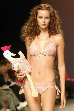 9月8日,在西班牙巴塞羅納舉行了2004時尚春夏裝展示,模特現場展示了西班牙設計師TCN Toton Comella的性感比基尼。