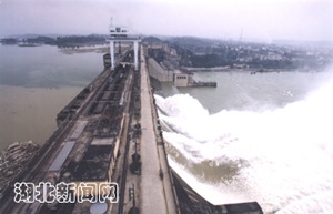 圖文:漢江上游來水迅猛 丹江口水庫開閘泄洪 (2003-09-09 19:25:06)