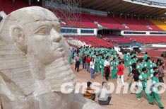 大批身穿便裝的群眾演員十九日正在北京工人體育場參加大型戶外景觀歌劇《阿依達》的彩排。意大利著名歌劇《阿依達》將于九月二十七日在北京演出。此次演出規模空前,僅群眾演員就達到4600多人。中新社記者:張煒