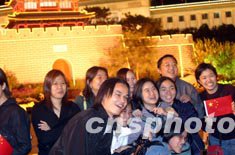 十月一日十國慶長假第一天,當晚有數萬游客在北京天安門廣場觀看夜景。中新社記者:盛佳鵬