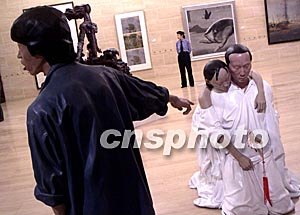 北京十月的國際藝術雙年展上,一件表現悲劇情節的雕塑標新立異,令人深思。中新社記者:賈國榮