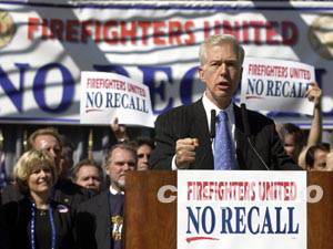 現任加州州長戴維斯六日下午到舊金山聯合廣場與消防員集會為反對罷免作最后沖刺。舊金山市長布朗和部分市參議員一道參加了集會。鬧得沸沸揚揚的加州州長選舉明晚將見分曉,如果現任州長戴維斯被罷免,新州長將水落石出。但戴維斯表示有信心在周三繼續去州長辦公室上班。作者:陳鋼
