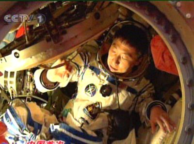 中國首位航天員楊利偉乘坐的“神舟”五號載人飛船,于北京時間十月十五日九時,在酒泉衛星發射中心用“長征二號F”型運載火箭發射升空。