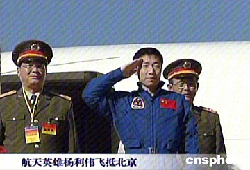 航天員楊利偉飛抵北京 精神面貌和身體狀況很好 (2003-10-16 11:01:38)
