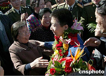 楊利偉凱旋 妻兒機場迎接 (2003-10-16 12:42:14)