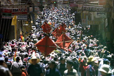 上萬的玻利維亞人10月16日在政府所在地拉巴斯舉行游行示威活動(dòng),要求總統(tǒng)貢薩洛·桑切斯·德洛薩達(dá)辭職。