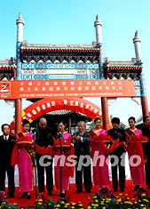 投資六千七百多萬人民幣擴建、修葺一新的山東臨沂市中國“書圣”王羲之故居,十七日正式對外開放。山東省副省長蔡秋芳(右一)、原中央軍委副主席、國防部長遲浩田(右二)等為王羲之故居整修工程竣工典禮剪裁。中新社記者:王麗南