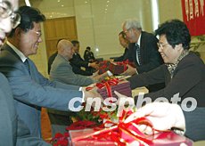 全國政協副主席羅豪才(右二)、中國海外交流協會常務副會長陳玉杰(右一)等為理事會領導成員、常務理事頒發聘書。中新社記者:滿會喬