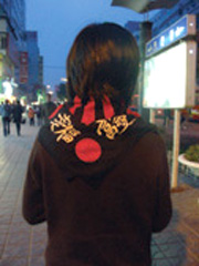 記者隨即裝作顧客挑選取起頭巾來。營業員告訴筆者,這種方巾是她們最近才進的貨,一條7元。在與店主的交談中,店主說,剛進入秋季的時候,這種方巾非常好賣,每天都可以賣出去十幾條,購買方巾也大多是年輕人,現在天冷了生意不是很好,不過每天還是有人購買。記者問道,那種白底紅太陽圖案的“方巾”有沒有?店主說,那種方巾賣得的最火了,早就賣光了。鄰近的一家店主也證實,一個月前這家的這種絲巾賣的特別火。