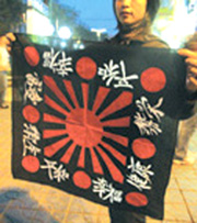 中新網10月23日電 據今日出版的《都市天地報》報道,本應和“日本軍國主義”、“大東亞共榮圈”一起從中華大地上消失的代表侵略意義的“日本軍旗”,現在卻堂而皇之地出現在蘭州市的一些商鋪里,被當做所謂“另類商品”出售。