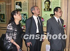 二十三日,赴閩參加“中國科協青年科學家福州活動基地”授牌儀式的臺灣海峽兩岸學術文化交流協會理事長丁一倪(右一)、臺灣大學教授劉麗飛(左一)、臺灣中山醫學院教授林克亮(中)饒有興致地進行參觀。中新社記者:劉可耕