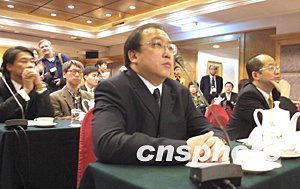 中國文化部副部長孟曉駟、中國廣電總局副局長趙實二十四日在北京貴賓樓飯店會見了來自香港的影視演藝界訪京團,雙方交流了關(guān)于大陸和香港文化發(fā)展的部分意見。圖為香港導演王晶(中)在見面會上。中新社記者:廖文靜