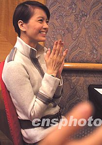 中國文化部副部長孟曉駟、中國廣電總局副局長趙實二十四日在北京貴賓樓飯店會見來自香港的影視演藝界訪京團。香港藝人梁永琪一改清純少女形象,以整齊的束發(fā)和正式套裝參加會見。中新社記者:廖文靜