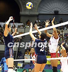 中國女子排球隊十一月三日下午在日本鹿兒島進行的世界杯賽事中,直落三局輕取剛剛露出“黑馬”之相的多米尼加隊。中國女排拿手的快攻戰術令對手防不勝防。中新社記者:王健