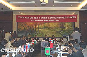 據(jù)悉,今年八月,亞太空間合作組織在泰國曼谷舉行章程起草組第一次會(huì)議,與會(huì)代表一致同意將亞太空間合作組織總部設(shè)在中國。十日舉行的第二次會(huì)議將結(jié)束亞太空間合作組織章程所有條款的討論,在獲得有關(guān)國家政府批準(zhǔn)后,亞太空間合作組織即可正式成立。