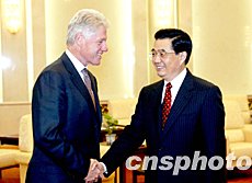 胡錦濤希望克林頓繼續為中美關系在堅持中美三個聯合公報的基礎上保持發展發揮積極影響。