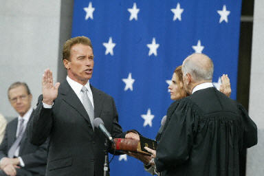 阿諾·施瓦辛格于美國當地時間11月17日宣誓就任加利福尼亞州第38任州長。施瓦辛格宣誓就職儀式吸引了大約740名記者參加,規模堪比美國總統就職儀式,世界各地數百萬觀眾觀看了儀式的現場直播。