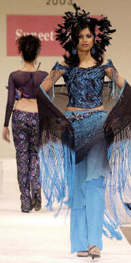 組圖:倫敦時裝周上模特現場展示的流行服飾 (2003-09-23 09:46:48)