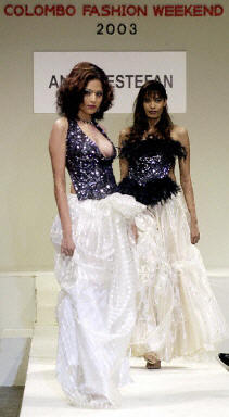 11月16日,在斯里蘭卡首都科倫坡的時裝周上,印度和斯里蘭卡的服裝設計師聯合推出了最新款式的服飾。圖為斯里蘭卡模特現場表演。