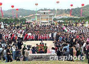 “……靖海功高,名齊班馬;寧疆謀遠,福惠群黎。公之殊勛卓樹,在神州之一統。公之芳聲隆譽,著青史于千秋!……”在泉州市政協副主席鄭今奮宣讀完祭文后,來賓代表在陵園旁種下了一圈常青紀念樹,所有來賓神情肅默地繞陵墓一周。