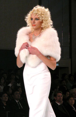 中國國際時裝周上東北虎皮草公司宣布中國推出第一個高級晚裝品牌NE·TIGER,圖為高級皮草晚裝展示。