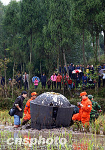 上午九時四十二分,西安衛星測控中心西北某活動測控站向衛星發出“返回調姿”“兩艙分離”等遙控指令,衛星順利完成相應動作,由運行姿態調整為返回姿態,開始重返大氣層。當衛星返回艙進入回收空域時,擔負回收任務的西安衛星測控中心所屬活動站及時捕獲跟蹤目標,西安中心精確預報返回艙落點。在有關單位的協同配合下,搜索人員迅速趕往返回艙著陸地點,對返回艙進行了現場處置。