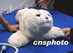 二十二日在日本東京進行的國際機器人展上。一種模擬海豹幼獸形象而研制的人工智能寵物頗受歡迎。據介紹,這個取名為“帕羅”的機器寵物具備一定的觸覺、嗅覺和聽覺功能,并能夠以此而與人進行互動交流,特別適合于長期住院的兒童患者和福利設施中的高齡者的心理扶助。中新社記者:王健