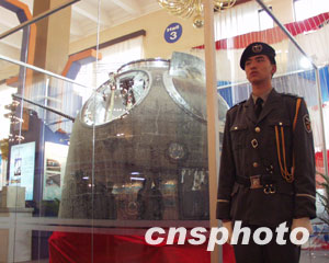 剛剛從香港、澳門、上海、重慶等地巡游返京的“神舟”五號載人飛船返回艙,以及航天員太空服、太空食品、降落傘等眾多中國載人航天技術產品,也在展覽會上一道與觀眾見面。